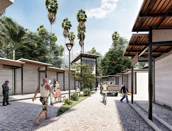 Marketo at Kalikav, Malappuram is a cost effective and eco friendly approach to commercial solution. Structure is proposed to be built with containers. The single floor Architectural solution for commercial building is full swing investment with high value in return of investment and an effective way to accommodate street vendors and small commercial spaces.